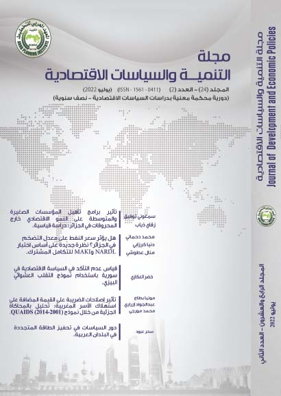 مجلة التنمية والسياسات الاقتصادية - دور السياسات في تحفيز الطاقة المتجددة في البلدان العربية