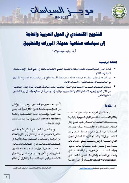 موجز السياسات - العدد الرابع بعنوان - حول " التنويع الاقتصادي في الدول العربية والحاجة الى سياسات صناعية حديثة: المبررات والتطبيق"