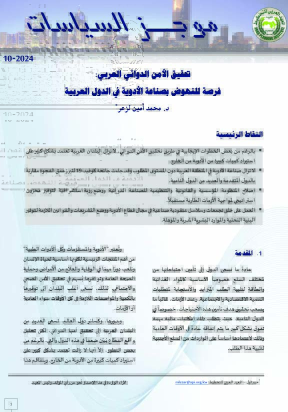 العدد العاشر - "تحقيق الأمن الدوائي العربي: فرصة للنهوض بصناعة الأدوية في الدول العربية"